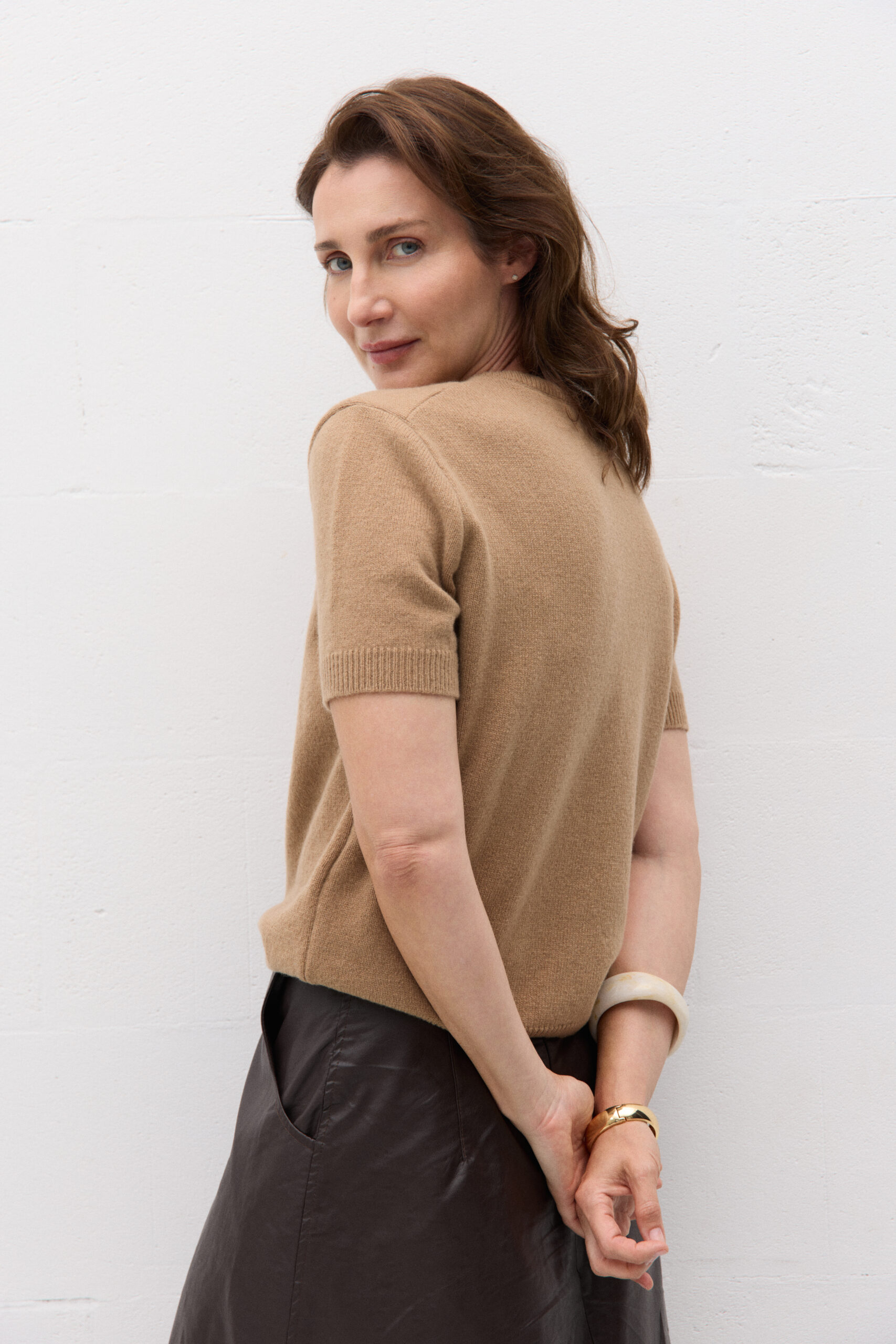 Isa to mała forma o dużym potencjale. Pierwsza dzianinowa koszulka w kolekcji Piumo. Lekka, oddychająca i stworzona z myślą o przejściu: między latem a jesienią. Delikatnie dopasowana, uszyta z przędzy o wyjątkowym składzie: 30% kaszmiru i 70% wełny merino. Miękka, przyjemna dla skóry, idealna również do noszenia solo, bez dodatkowej warstwy.