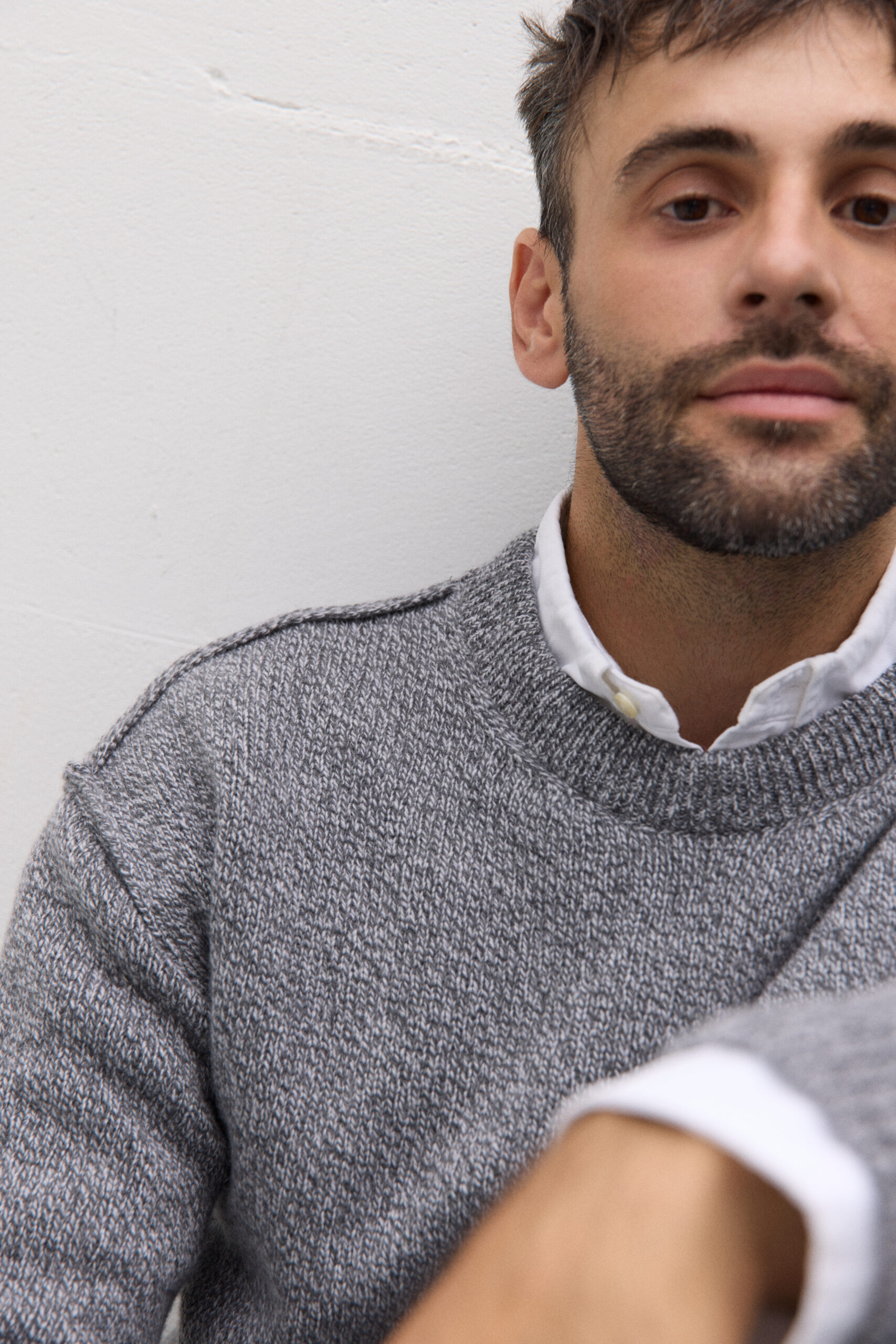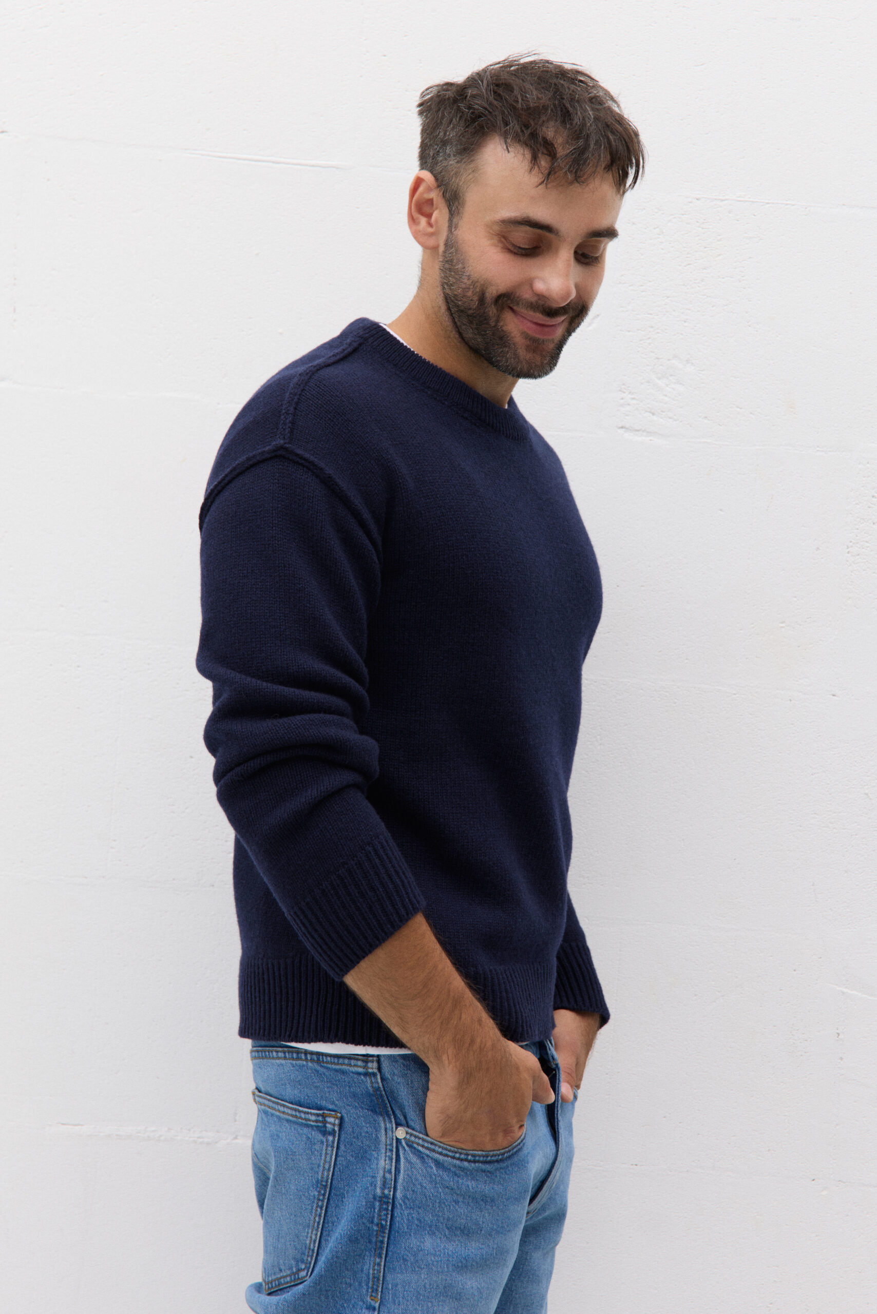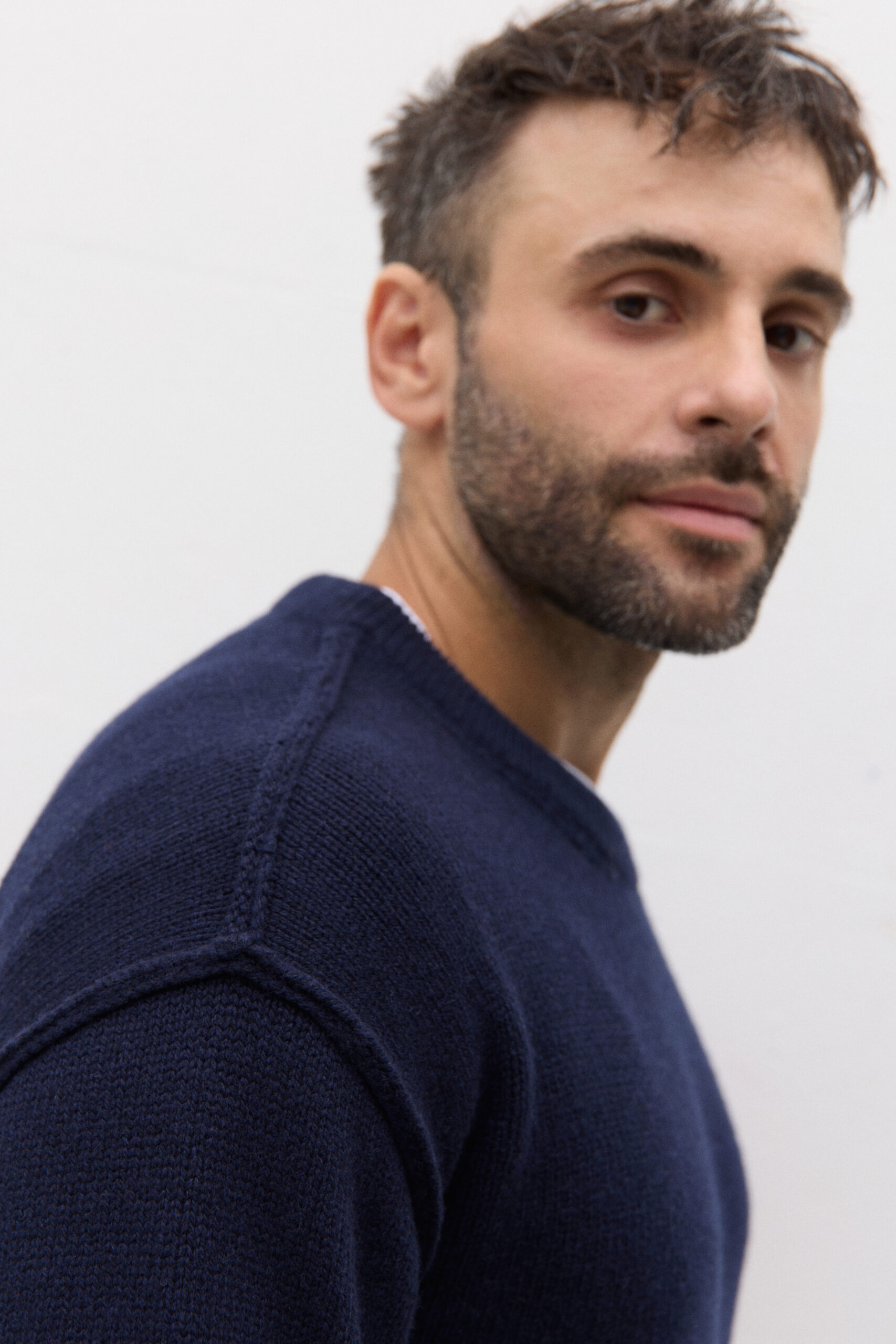 Uszyty z przędzy o składzie: 90% miękkiej wełny merino i 10% kaszmiru, jest nieco grubszy niż klasyczne modele, ale wciąż wygodny i przewiewny – idealny na chłodniejsze dni, zarówno do pracy, jak i po godzinach.