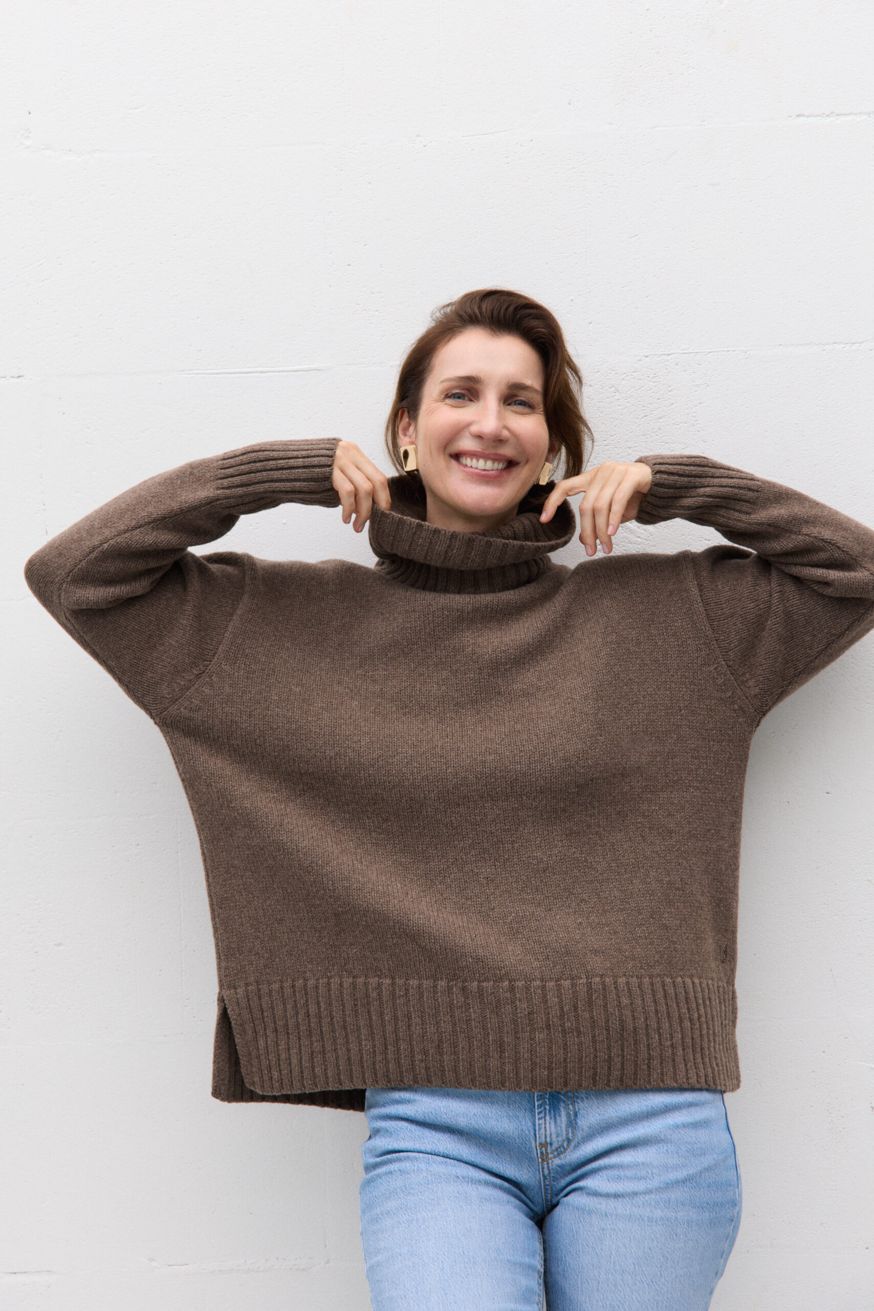 Tak mięciutkiego swetra merino jeszcze nie mieliśmy. Nazwaliśmy go NUVOLA nie bez powodu – po włosku oznacza chmurkę! Klasyczny damski sweter, lekko oversize’owy krój z luźnym, przyjemnym dla szyi golfem i modnymi rozcięciami przy ściągaczu. Jak to przystało na chłodną aurę oczywiście z kaszmirem – gruby i mięsisty. Z wyhaftowanym subtelnym logo PIUMO w prawym dolnym rogu.
