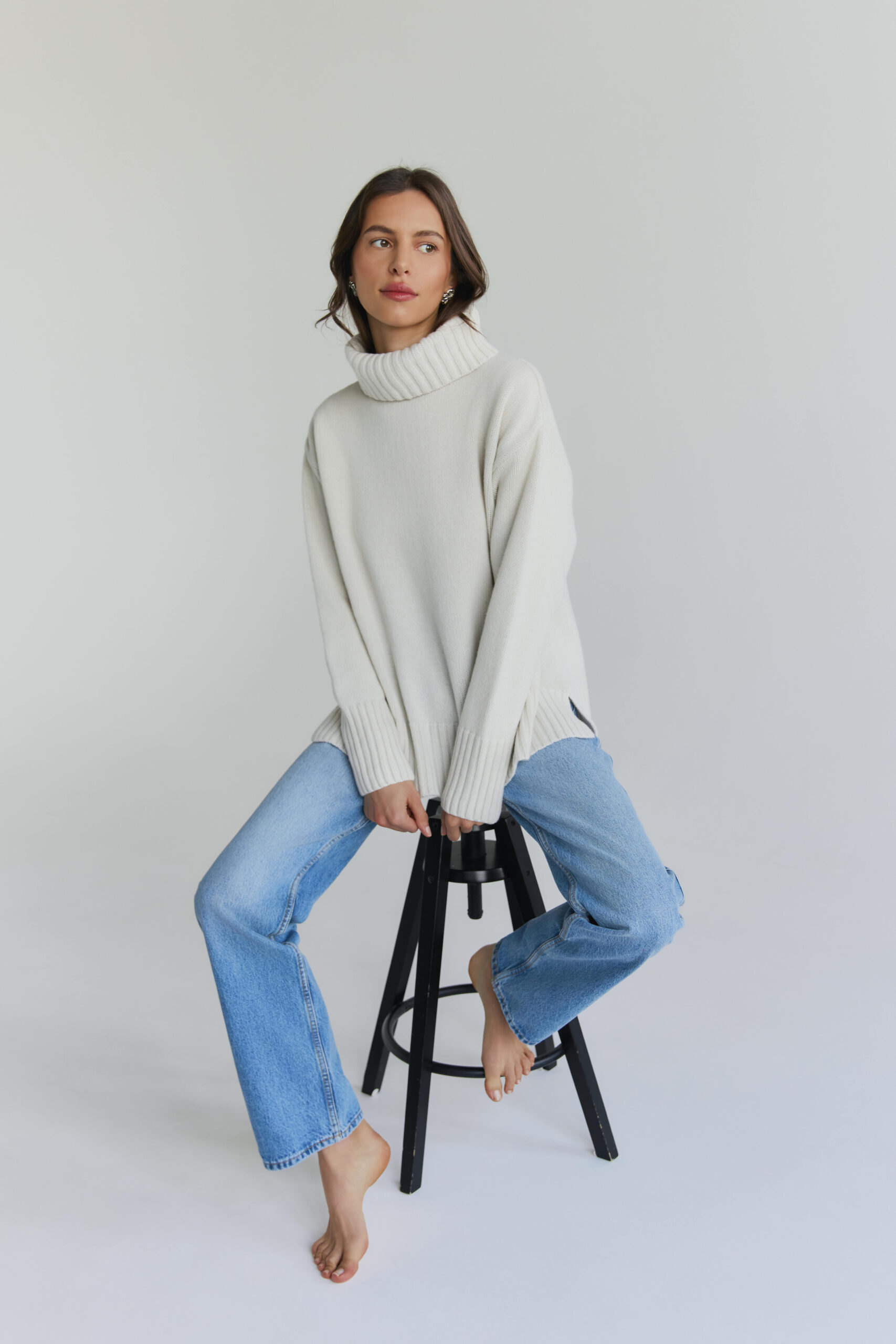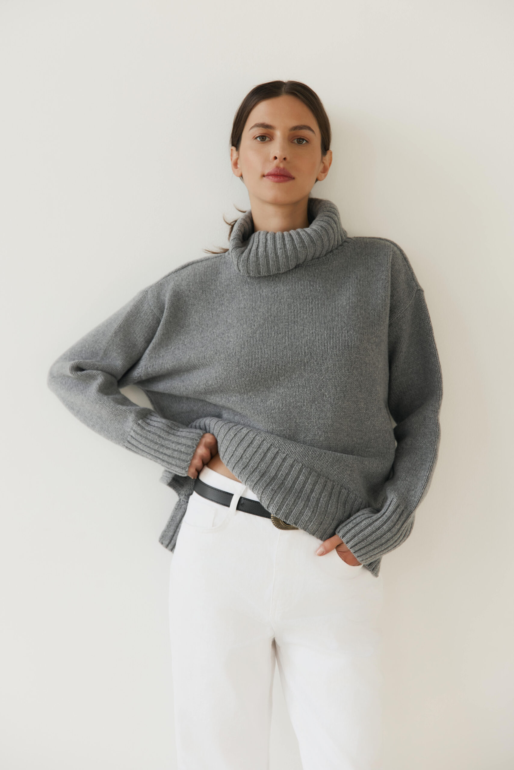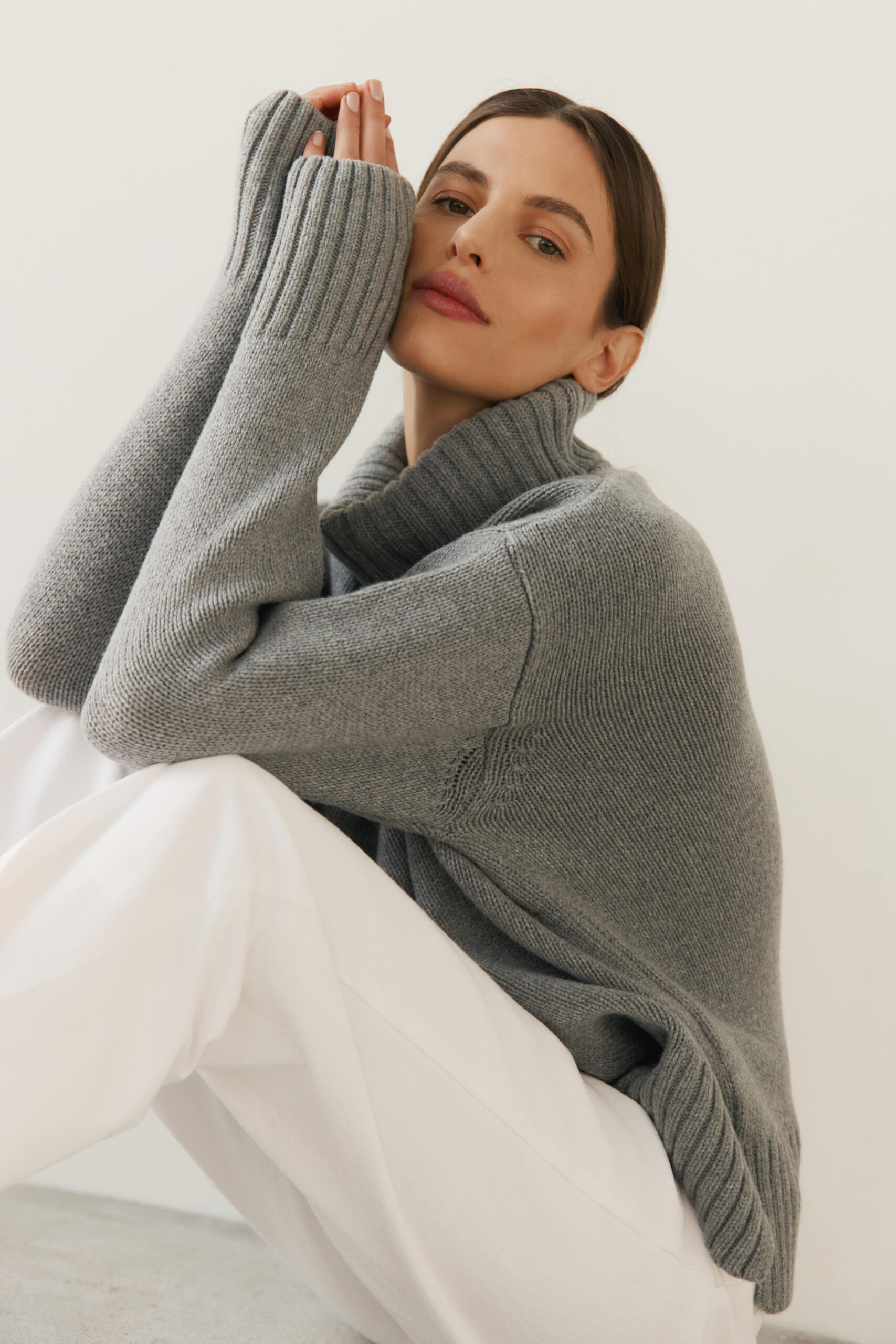 Tak mięciutkiego swetra merino jeszcze nie mieliśmy. Nazwaliśmy go NUVOLA nie bez powodu – po włosku oznacza chmurkę! Klasyczny damski sweter, lekko oversize’owy krój z luźnym, przyjemnym dla szyi golfem i modnymi rozcięciami przy ściągaczu. Jak to przystało na chłodną aurę oczywiście z kaszmirem – gruby i mięsisty. Z wyhaftowanym subtelnym logo PIUMO w prawym dolnym rogu.