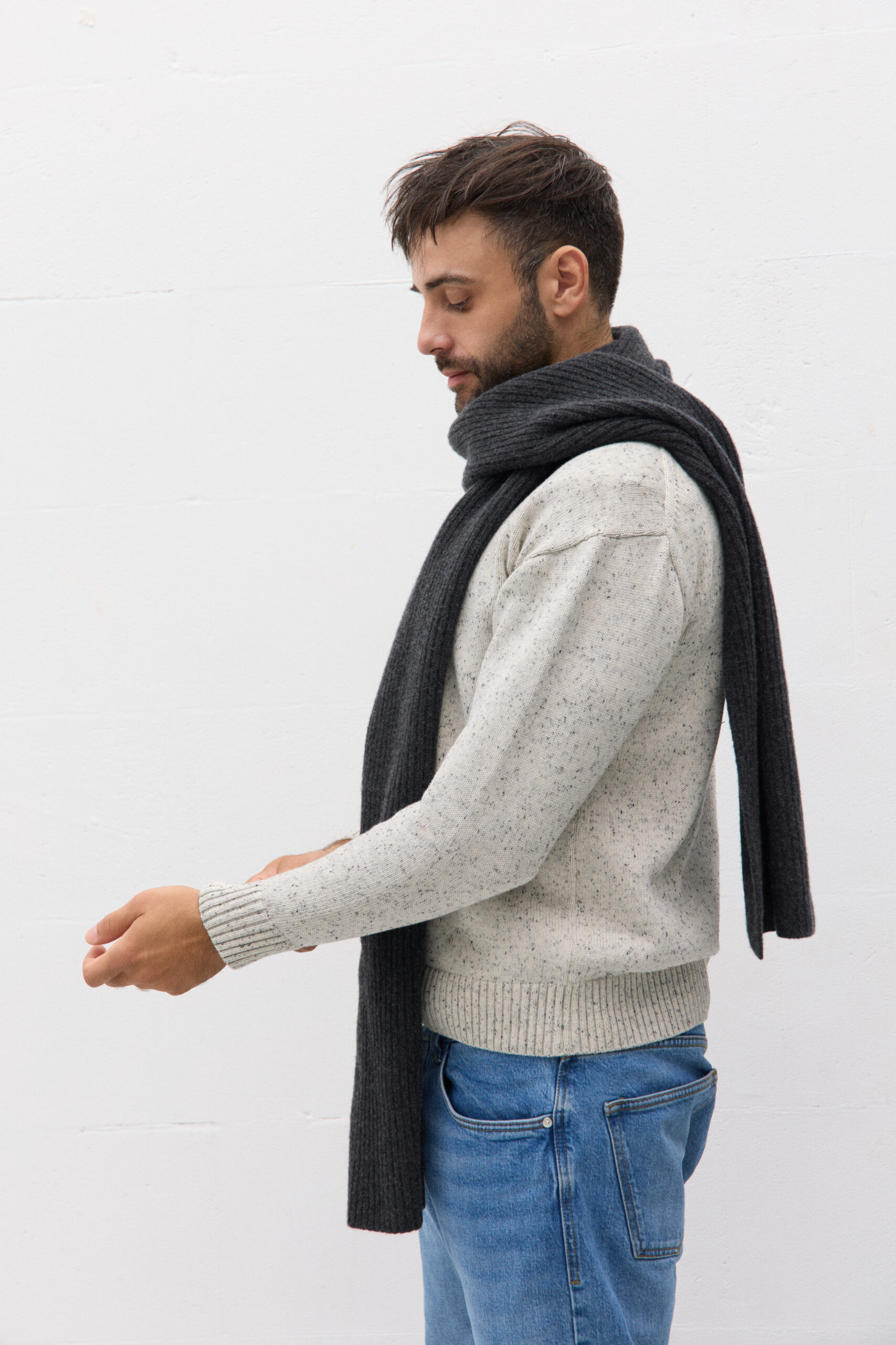 Wystarczająco ciepły, aby ochronić przed chłodem, ale na tyle lekki, by swobodnie włożyć go pod kołnierz płaszcza, kurtki czy marynarki.